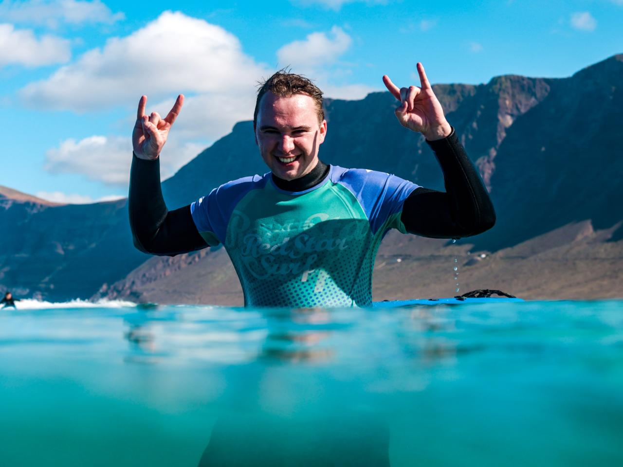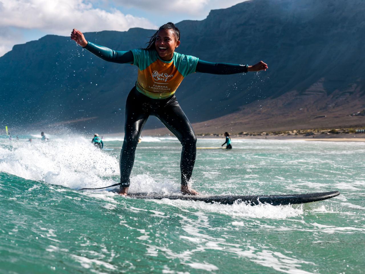 Ready to ride your first wave? 🌊 Our surf lessons in Famara offer personalized surf coaching on Lanzarote’s most stunning beach. Perfect for beginners or anyone looking to improve with expert guidance.