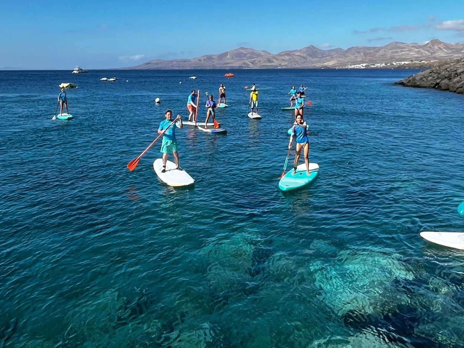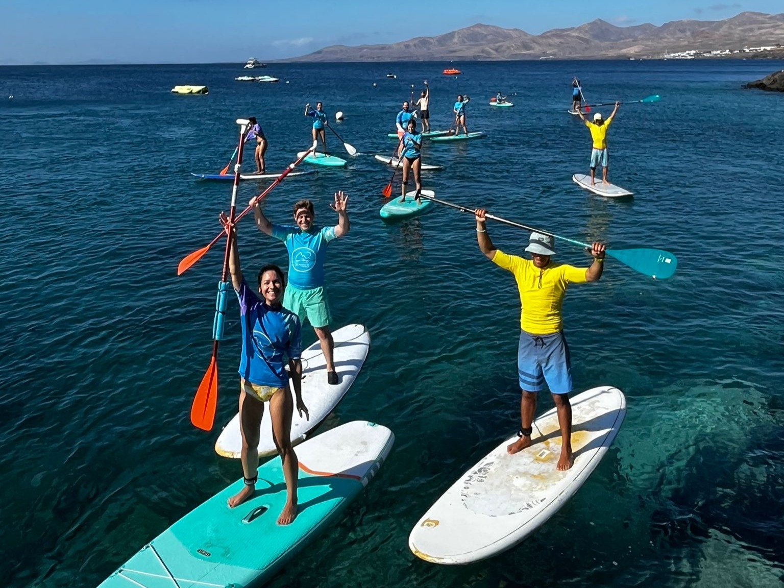 Discover Lanzarote's coast from the sea with a stand-up paddleboarding experience accessible to all levels. You'll paddle in crystal-clear waters, surrounded by unique landscapes, while connecting with the ocean in a fun and relaxing way.